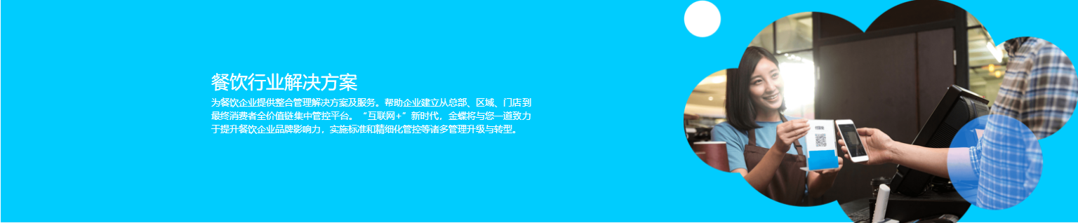 為餐飲企業(yè)提供整合管理解決方案及服務。幫助企業(yè)建立從總部、區(qū)域、門店到最終消費者全價值鏈集中管控平臺?!盎ヂ?lián)網(wǎng)+”新時代,金蝶將與您一道致力于提升餐飲企業(yè)品牌影響力,實施標準和精細化管控等諸多管理升級與轉(zhuǎn)型。